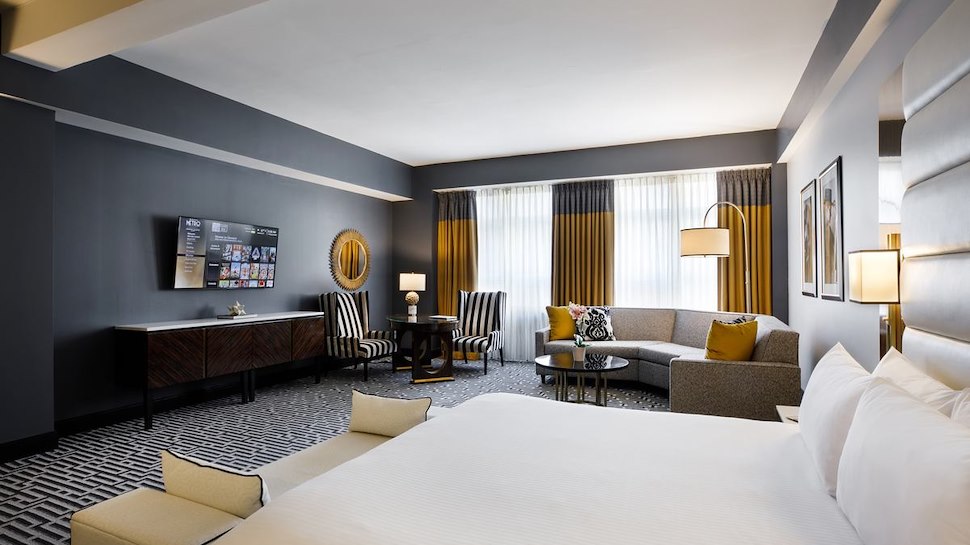 Our 414 sq ft. air-conditioned King Spa guestroom features a spa tub with luxurious bath amenities for the ultimate relaxation. This non-smoking room also comes with a living/sitting area.